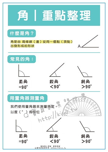 往往『銳角』、『鈍角』很容易錯亂,Q麻米做了一個簡易的重點整理,這是圖形版,改天再來整理文字版
